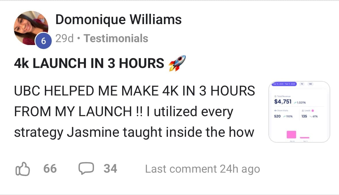 Get instant access to a success community where you can network & ask questions. We host weekly calls on mindset & business.
